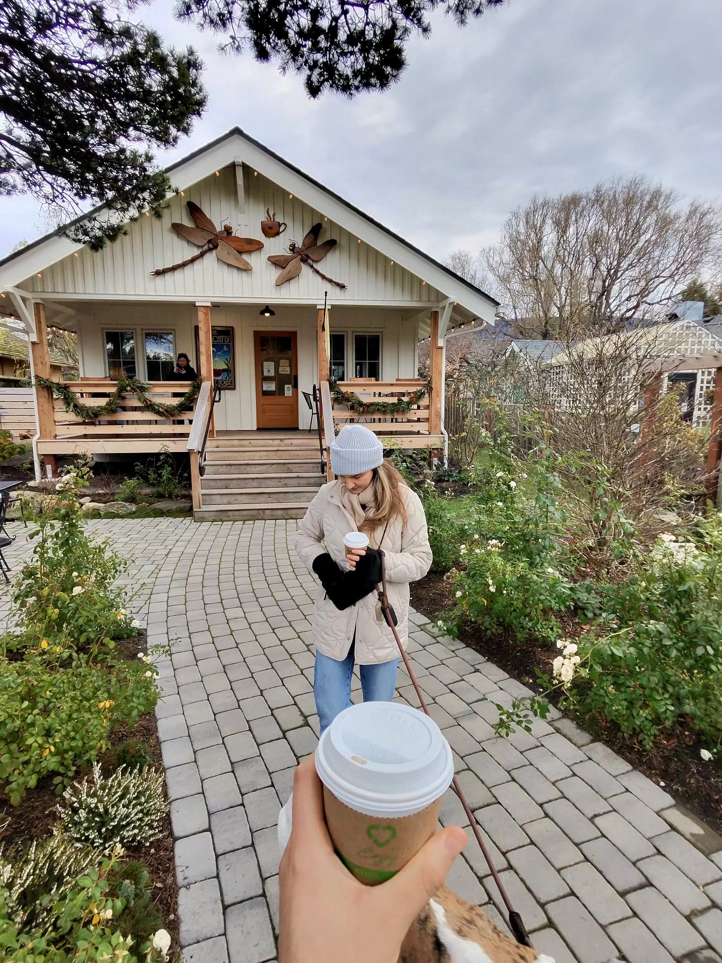 Coffee at Dragonfly. So welcoming, Louie made himself at home on the rug. A must. Seriously, I think it ranks as my top coffee shop in America. So Cozy.