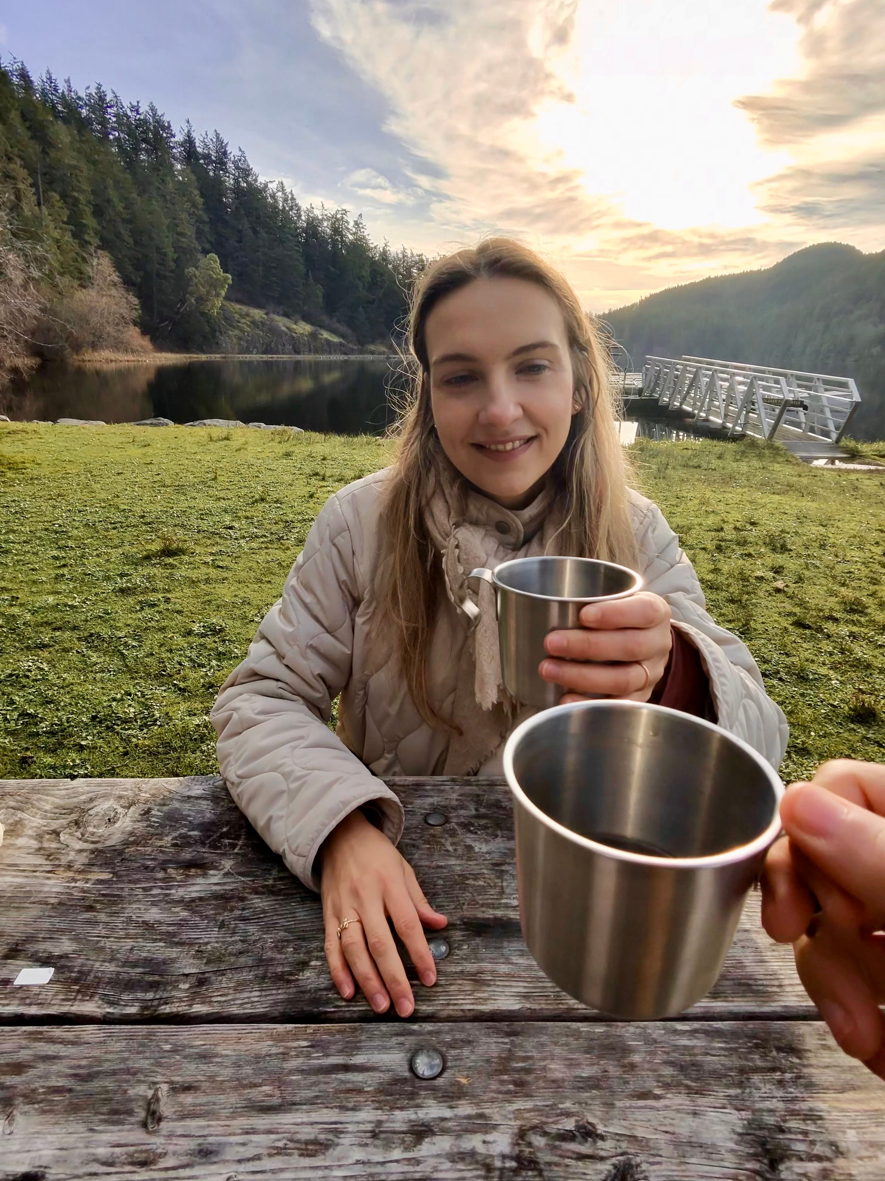 Coffee by the lake. Cold air. Gratitude.