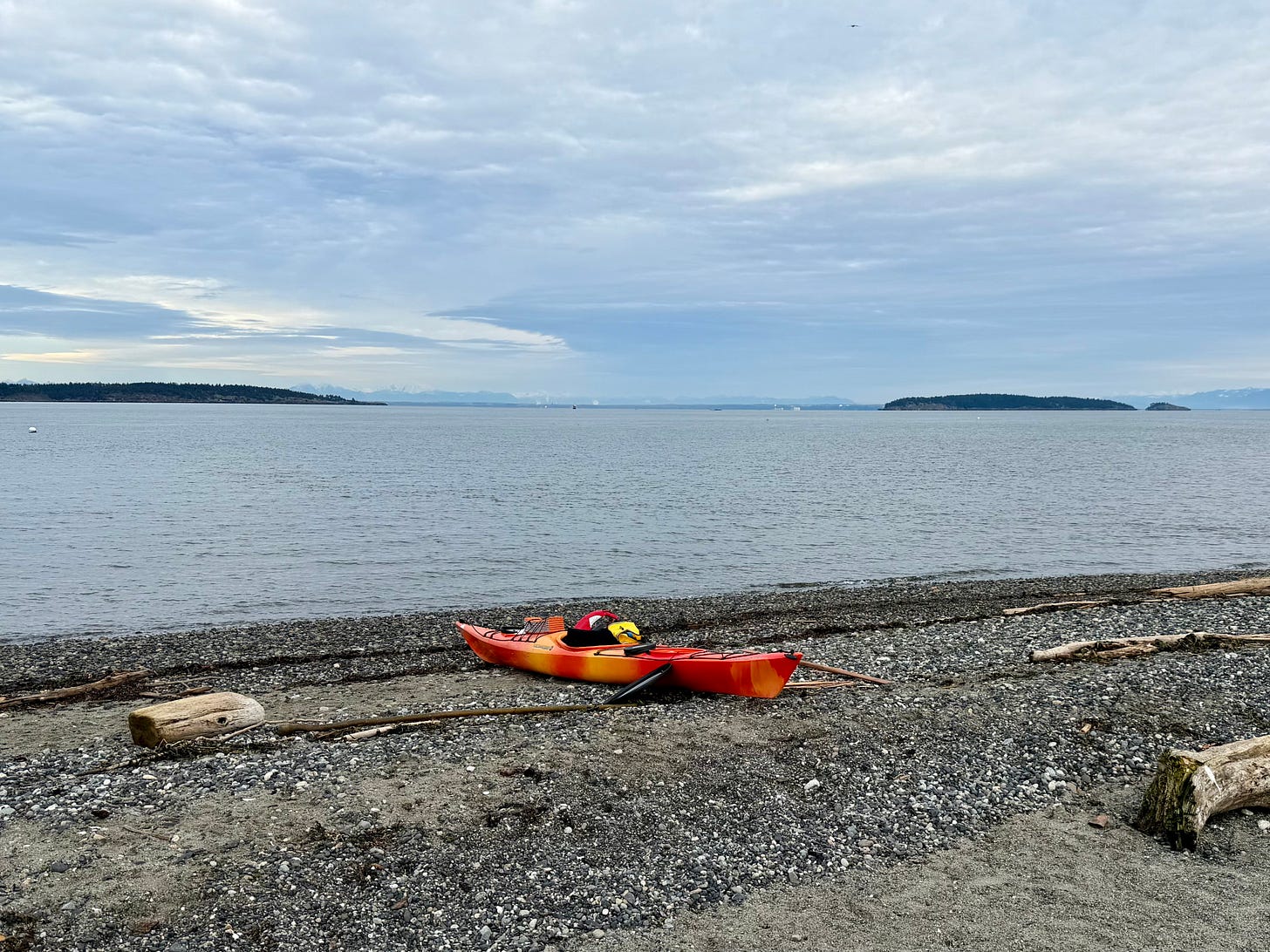 A solo kayaker packing for three days around the islands in frigid temperatures