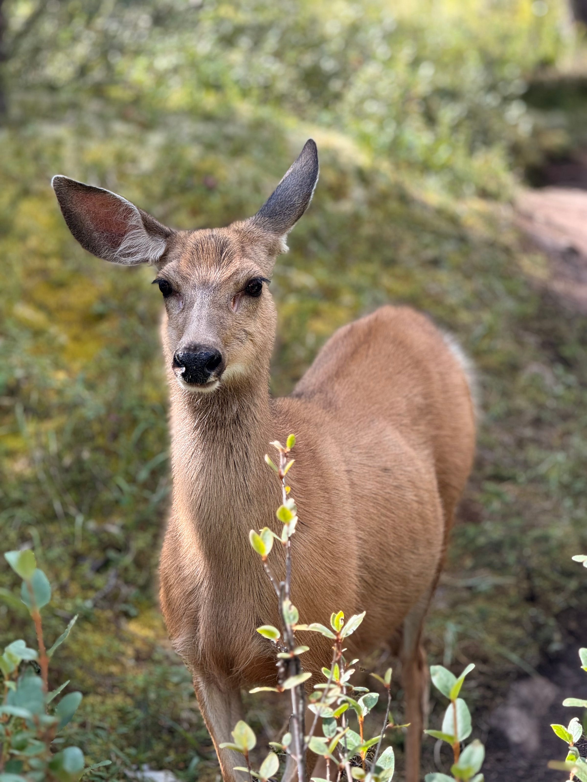 We hiked Upper Moose Loop at Maligne Lake. No moose. Instead, one deer. A very serious deer.