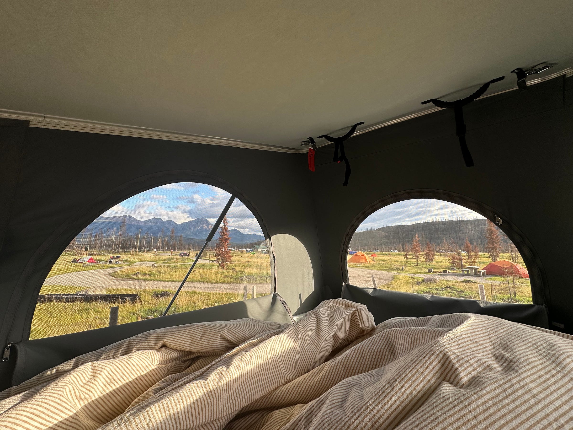 By the end of week one, the âcold bubbleâ had earned its place as our fourth travel companion. Nights in August at 6°C?! Louie, wrapped like a shawarma, was secretly grateful. Us? Shivering but stubborn. Still, between Bow Lake paparazzi, Gruyère-fueled dinners, and the magic of meeting strangers, the Rockies had worked their spell. The bubble hadnât won yet.