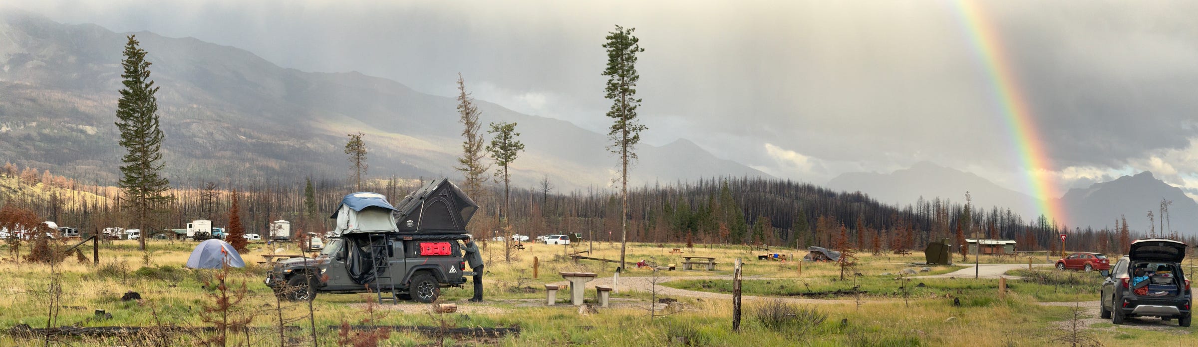 The real gut punch was Jasperâs burn scar. Kilometers of dead trees, a whole valley erased. Sobering. I asked a ranger about last yearâs wildfire - she got emotional. We rolled into camp heavy-hearted. But then came Elon, from South Africa. Not Musk. This Elon was the anti-Musk: cheerful, curious, gushing over our van, insisting proudly he drives below the speed limit. May we all channel Jasper Elon (unfortunately, I forgot to ask for a picture with himâŚ)