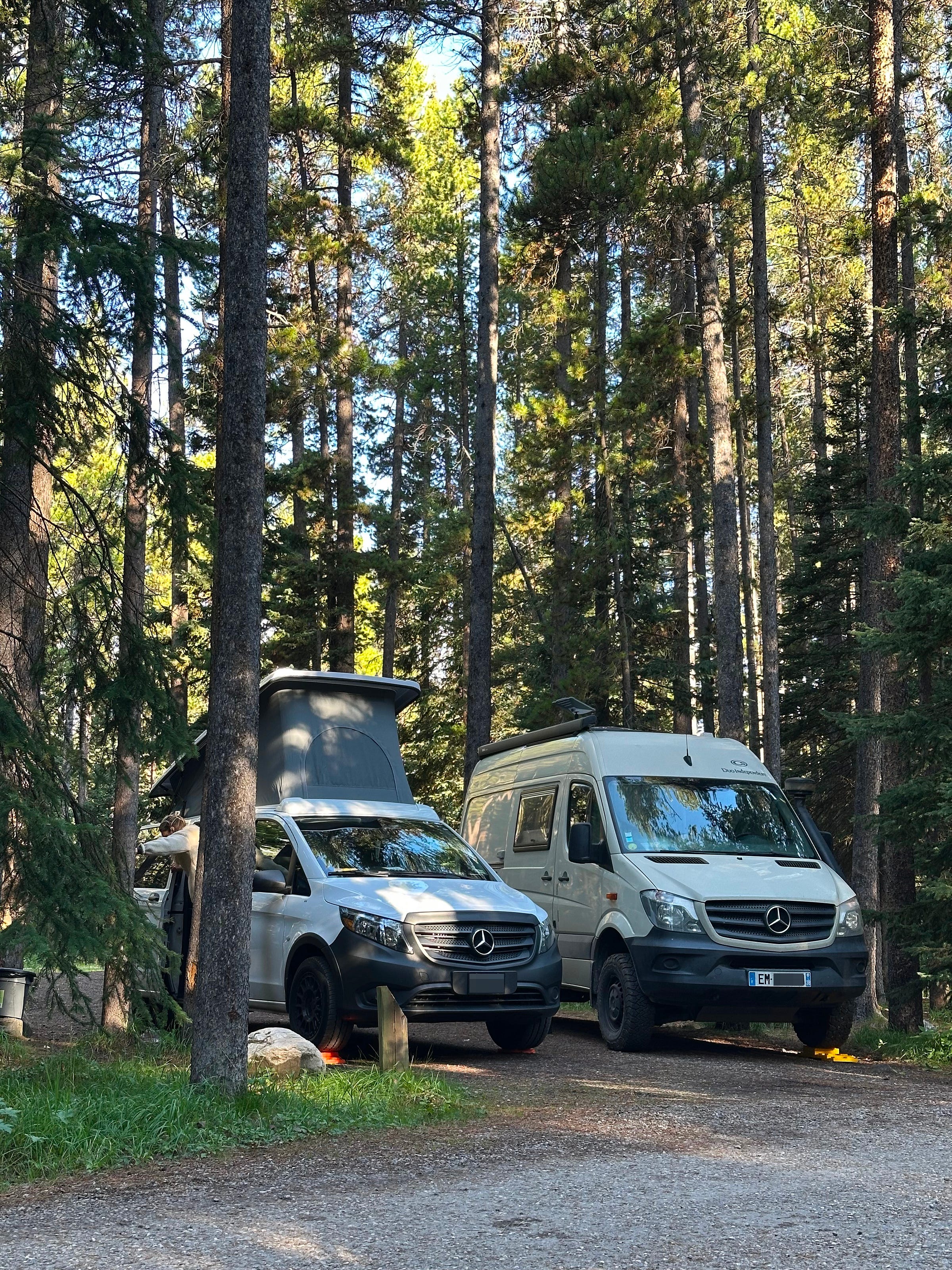 Next to us at the parking lot of Peyto lake: a Sprinter rig with French license plates. Of course we had to say hi. Mireille and Thierry, retired, touring the Americas for 18 months. Legends. We invited them to dinner at our Lake Louise campsite: they made pasta, we added salad, sourdough, and Gruyère (the holy trinity). Stories stretched past 11 p.m. Instant friends. This, we agreed, is the secret sauce of road trips: the people.
