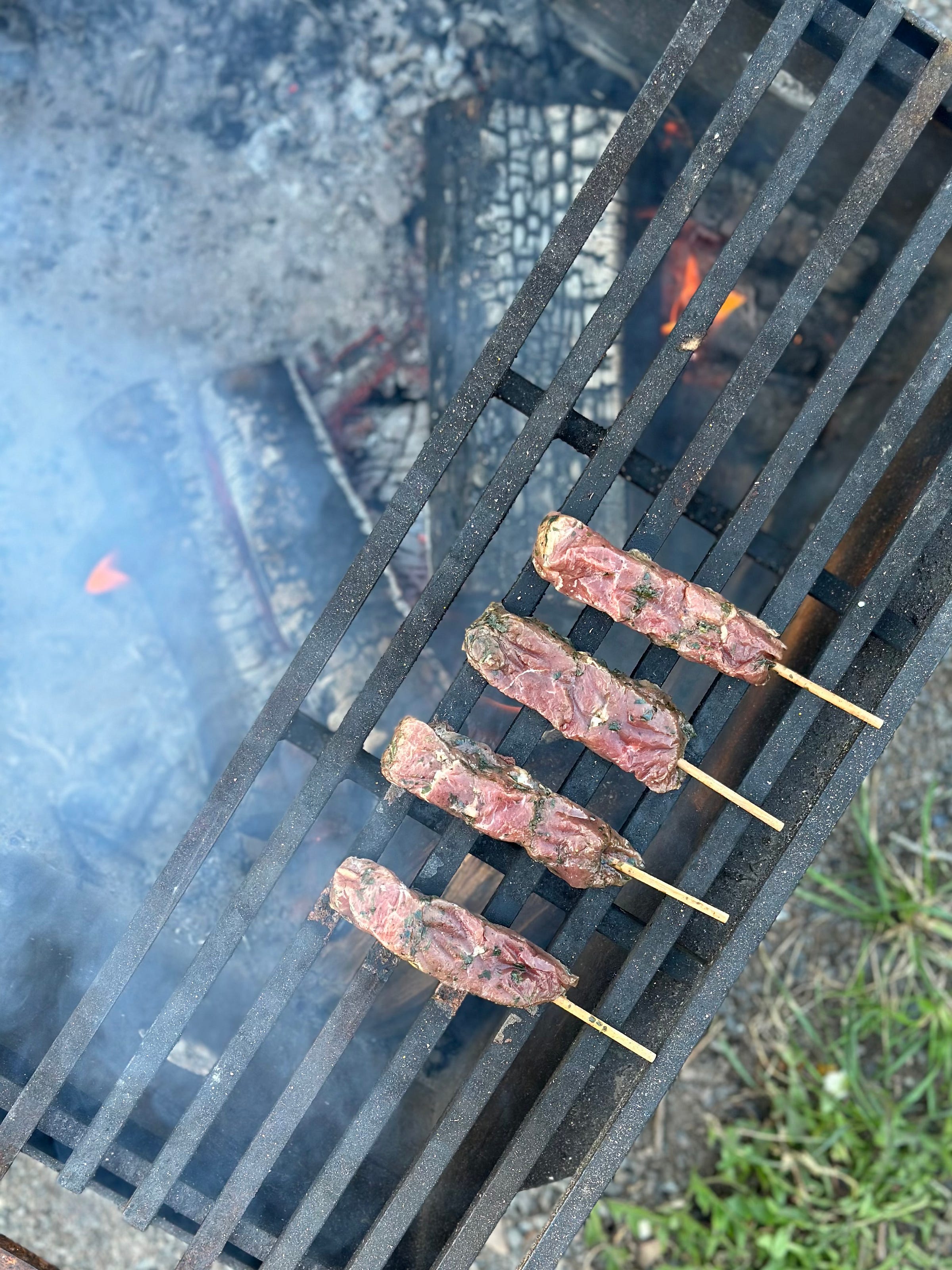 That evening I did something rare: started a campfire. I usually avoid them because I hate smelling like smoke in my skin, hair, and beard for days after. But this time, I made an exception. Why? To grill lamb skewers over real wood coals. And they were perfection. Salad, lamb, smoky air - It felt like a mezze table transplanted to Lake Superior. Even I had to admit: fire has its uses.