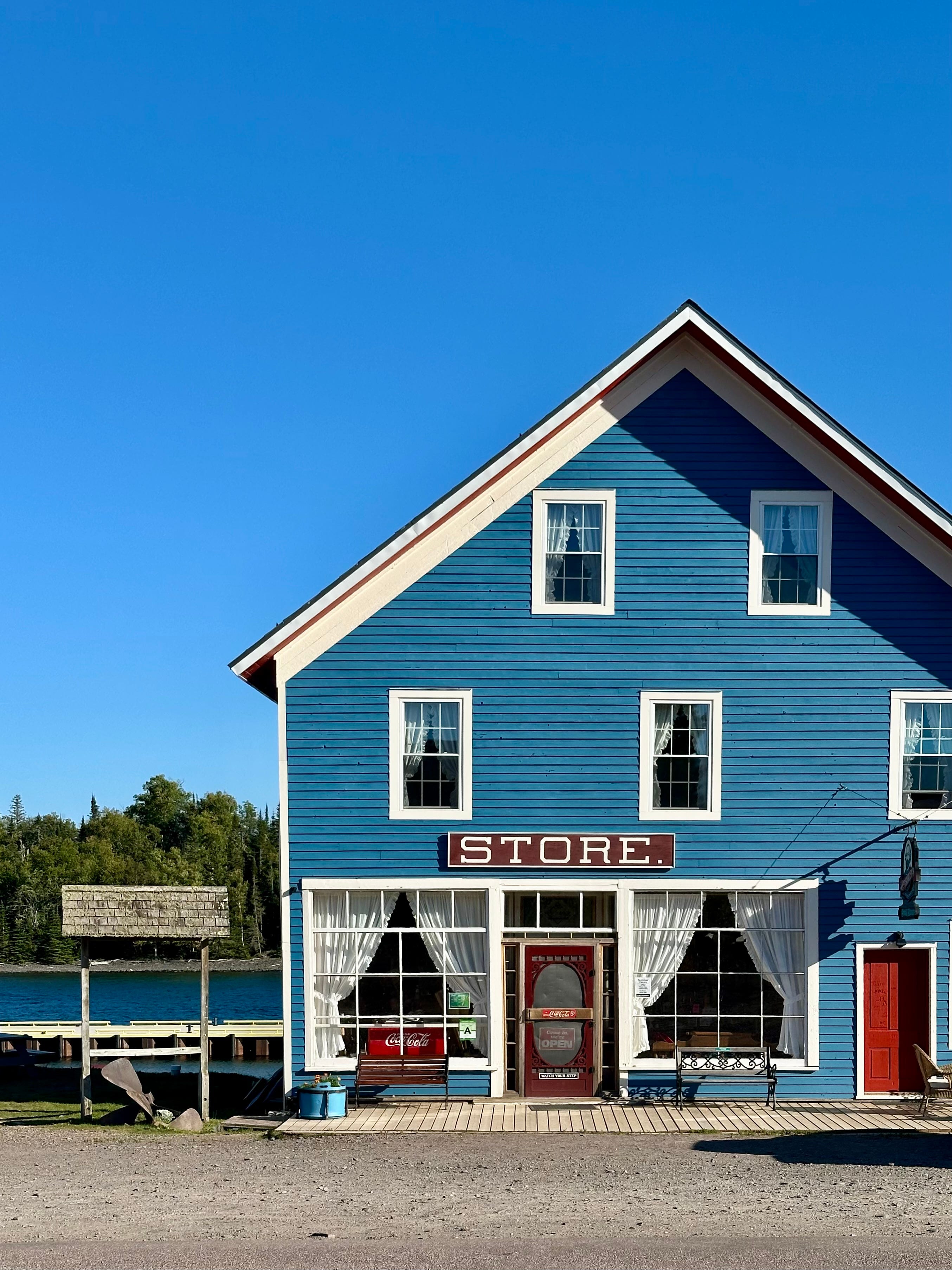We chatted with a local couple on the beach who insisted we check out nearby Silver Islet, a tiny village that once mined silver 1,300 feet beneath the lake. Off we went: charming cottages, shoreline roads, and a general store straight out of 1880. The owner (whose parents bought it in the ’80s) now runs it with her husband while living upstairs. Ice cream, antiques, and history all crammed into one creaky building. Worth every detour.