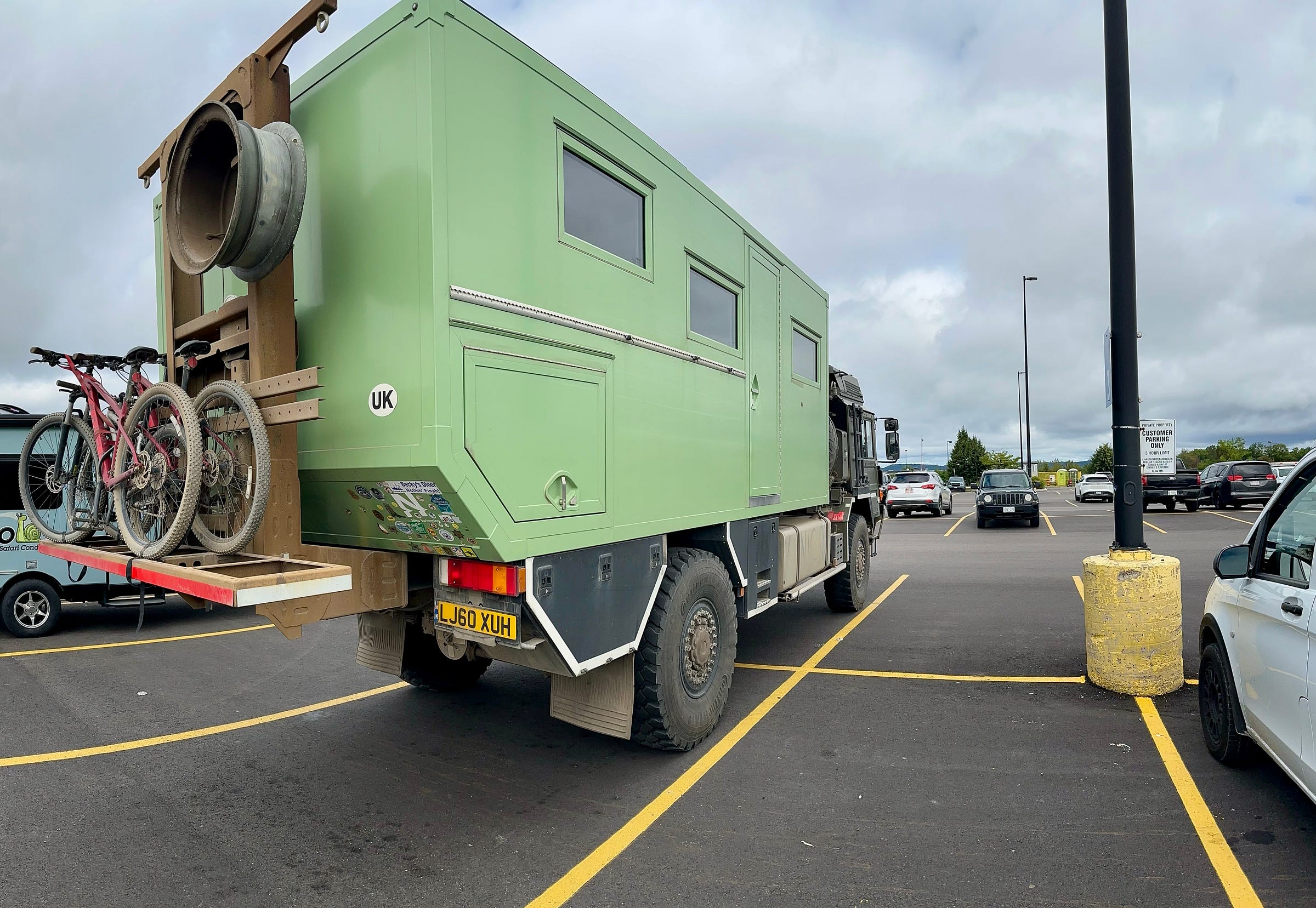 Dinner was simple. Morning hike (see Strava) was a “1 hour boardwalk” we finished in 17 minutes because Louie was on turbo mode 😅. Algonquin is famous for its epic paddle spots, but rain kept us grounded this time. As we drove east toward Montreal, a pit stop revealed a wicked overlanding rig. Straight out of a military convoy but licensed in England and outfitted for family life. We chatted with the kind owners, traveling with their two daughters at the tail end of a year-long North American adventure. Encounters like these kept the drive alive. And then… Montreal awaited.