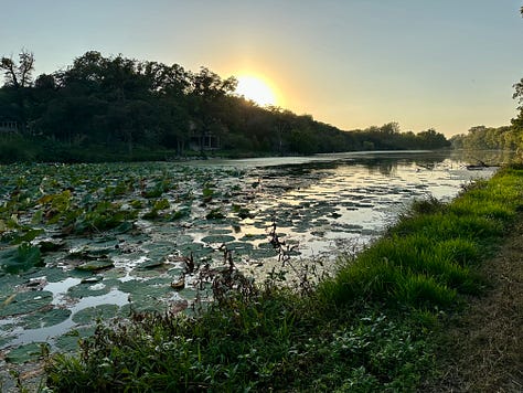 We reached Chamberlain just before sunset. The Missouri River shimmered gold. Louie chased smells. I chased silence. The campground: American Creek. Simple but perfect. We ate dinner watching the sky turn from orange to purple. I took a deep breath and realized something wild: we were halfway home.