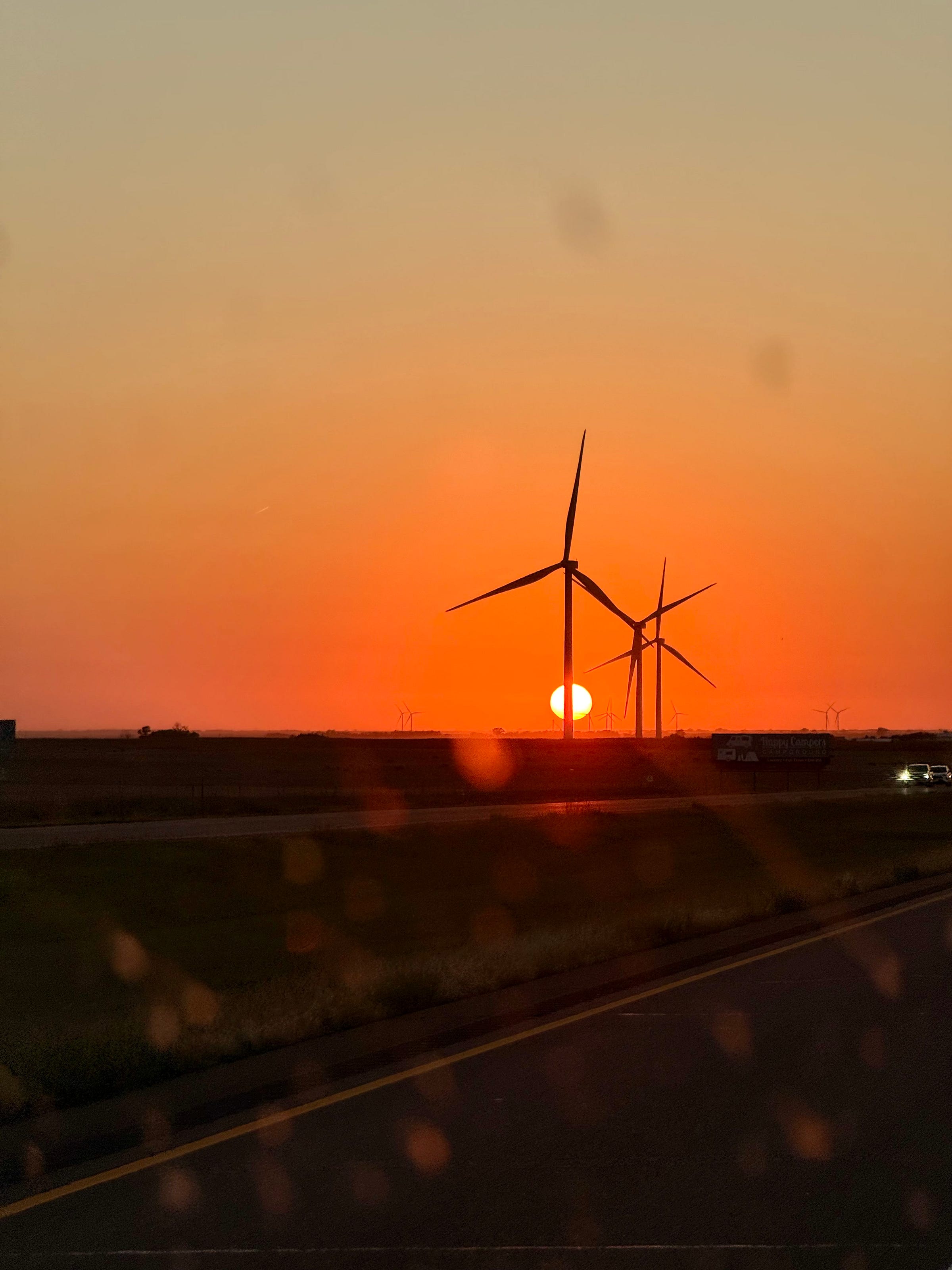 We entered the Great Midwest Grind. Eight hours of highway hypnosis and enough windmills to power Beirut.